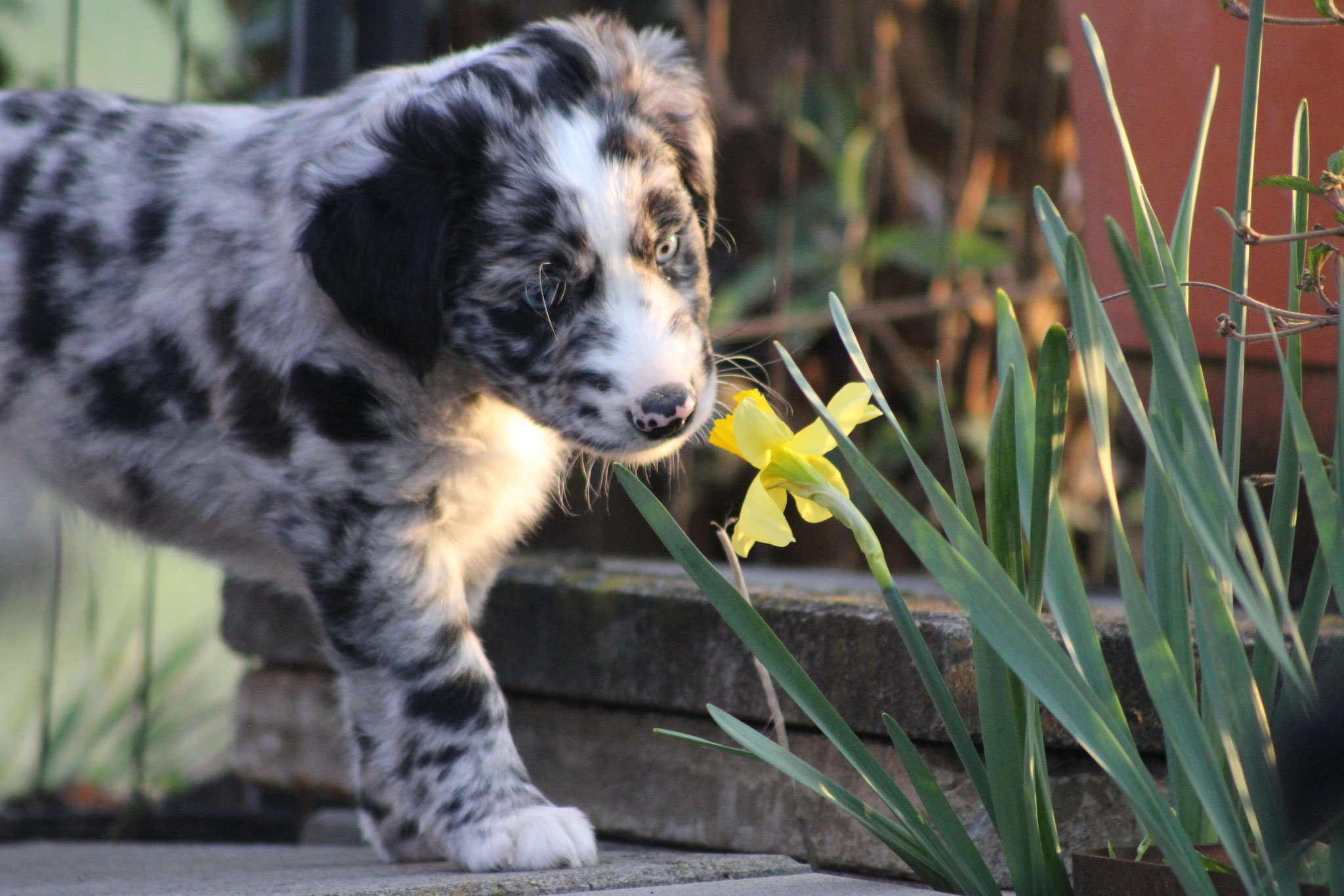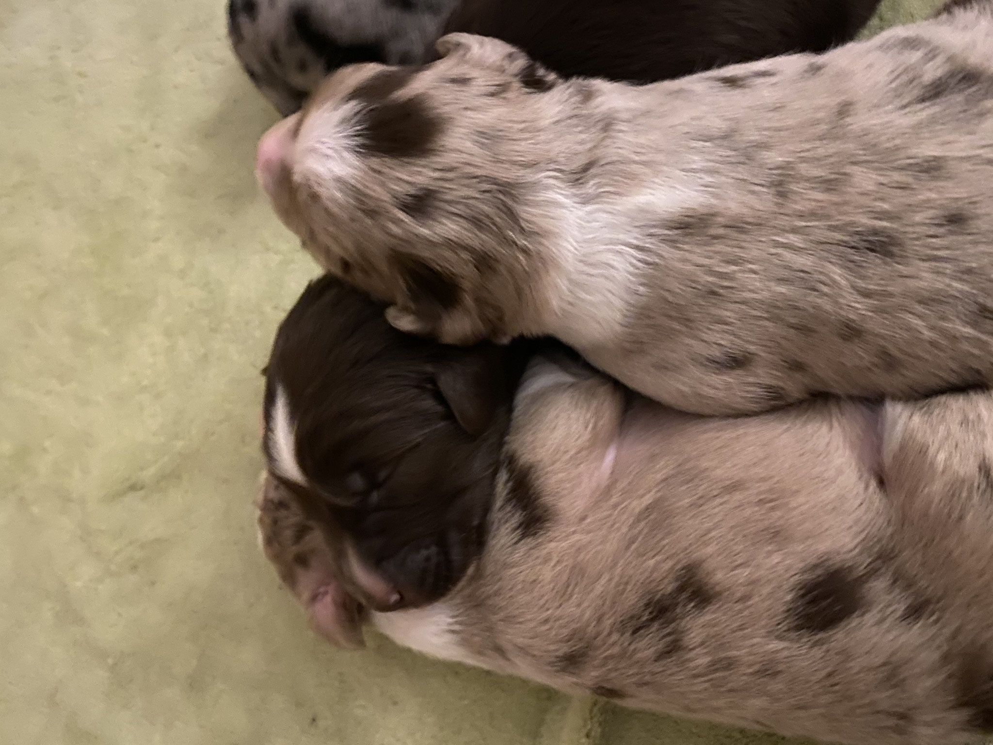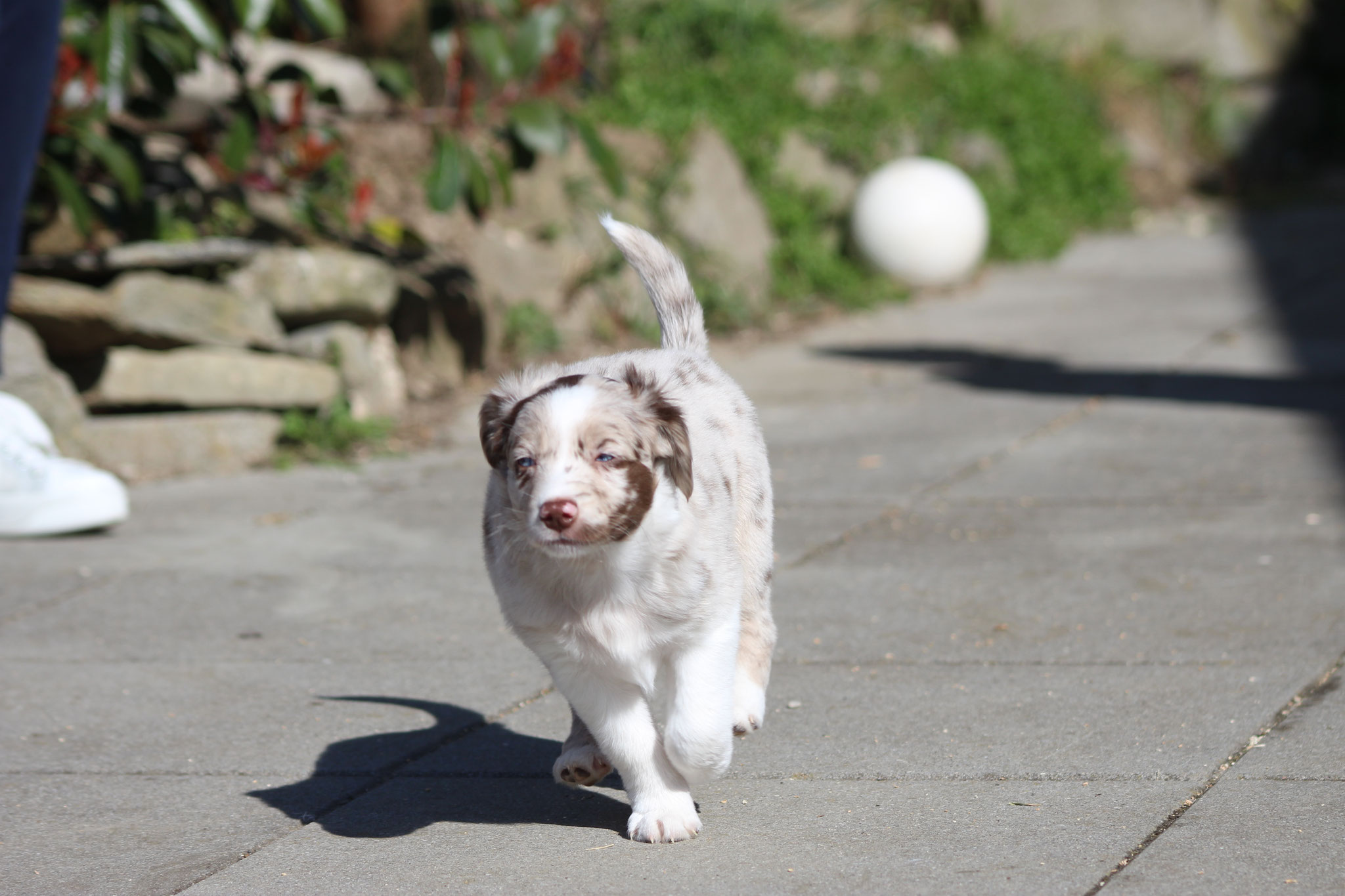 Touched by Sirius "Lexy" Red-Merle Vergeben, die kleine Lexy bleib ganz in unserer nähe und bleib eine Freiburgerin.